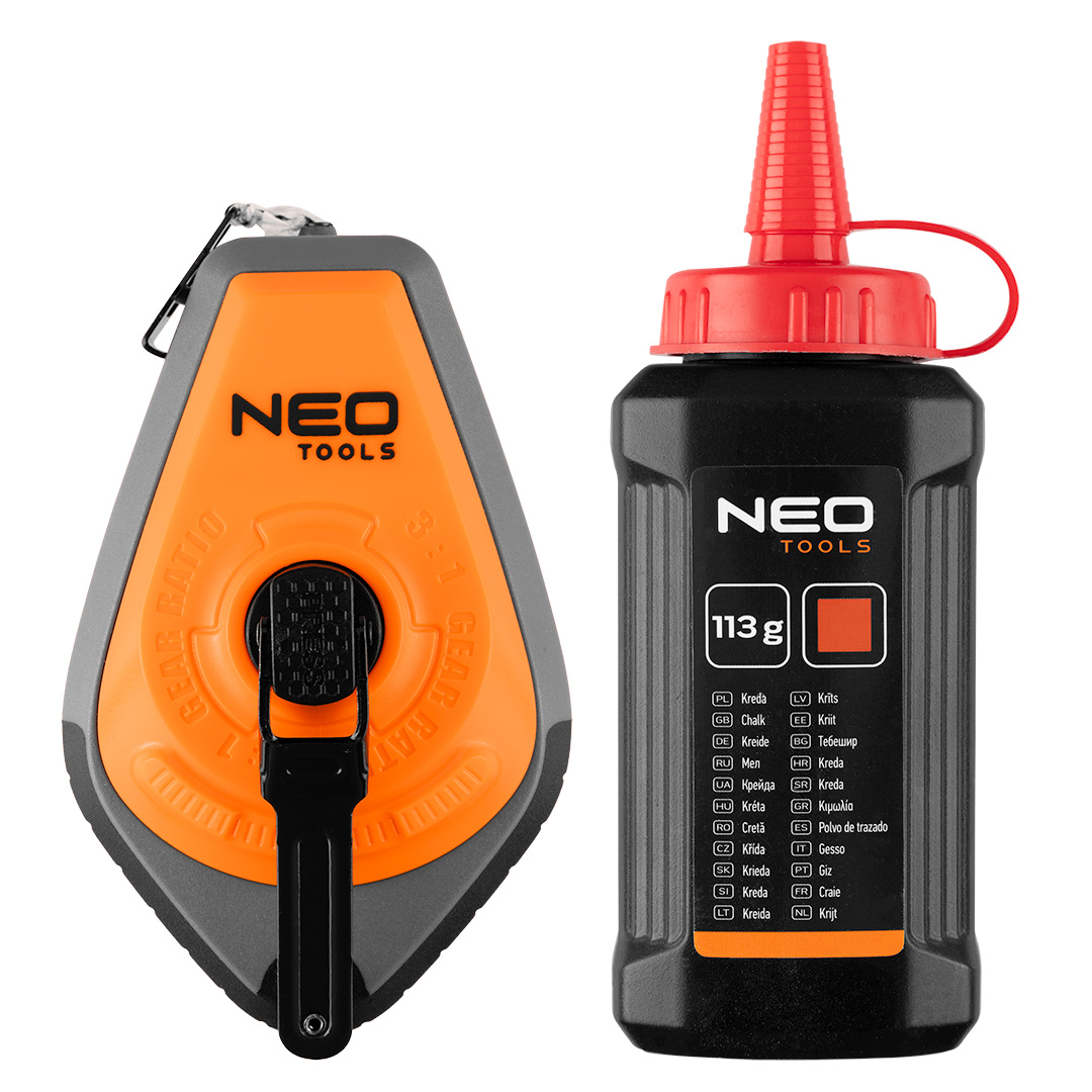 De NEO 49-951 is een praktische slaglijnmolen met kalkkoord — ideaal om snel en nauwkeurig rechte lijnen uit te zetten op muren, vloeren of plafonds tijdens bouwwerk, tegelwerk of renovaties. Dankzij de stevige behuizing en het 30 meter lange calqueerkoord kun je zowel kleine als grotere oppervlakken vlot markeren. Het breed vulvenster maakt het eenvoudig om kalk bij te vullen; de afwikkelvergrendeling zorgt voor controle bij gebruik.