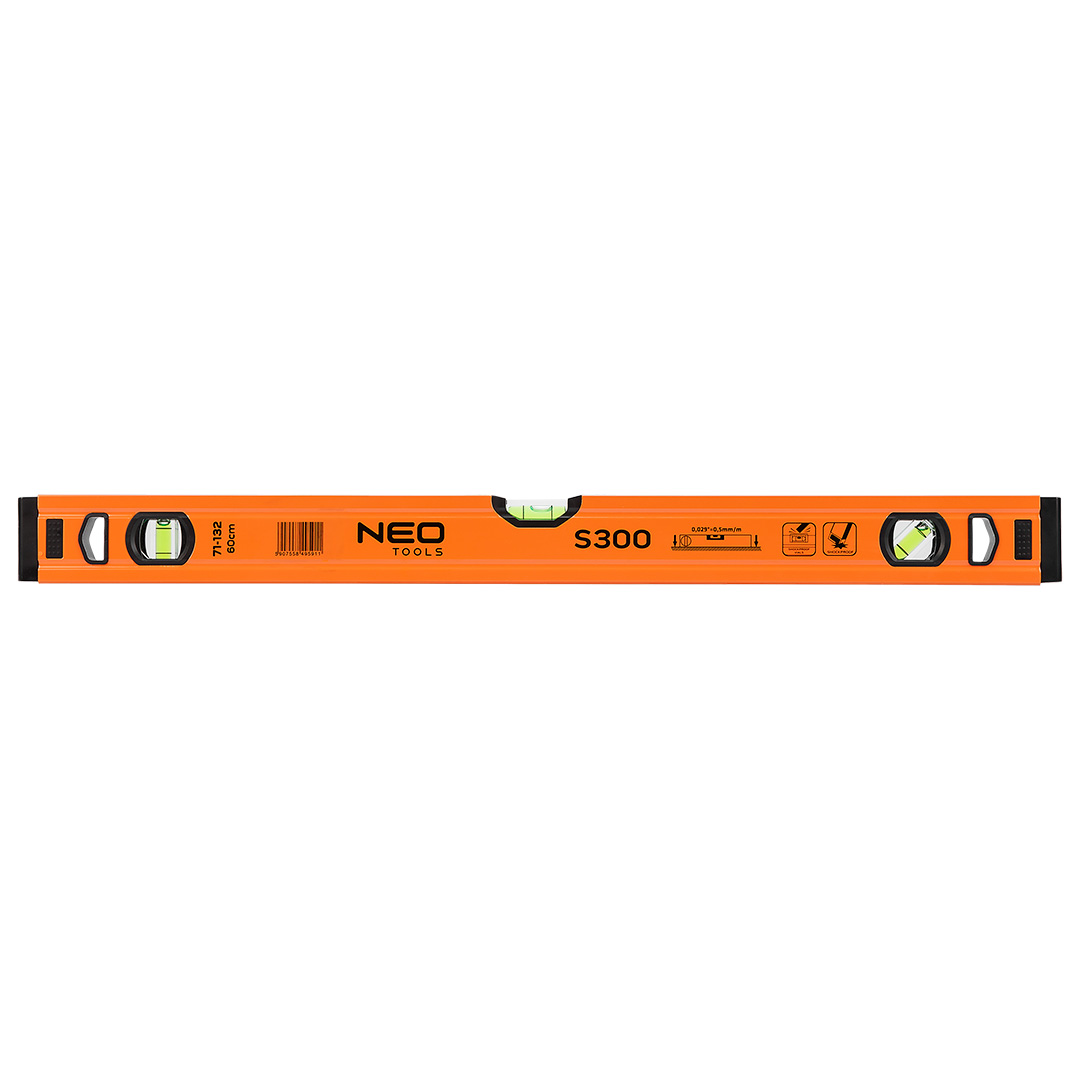 De NEO Waterpas 71-132 is een robuuste en nauwkeurige waterpas van 60 cm, uitgevoerd in een lichte maar stevige aluminiumlegering. Dankzij de profieldikte en anti-shock doppen blijft de waterpas stevig en duurzaam, ook bij intensief gebruik. Met twee libellen (voor horizontaal en verticaal niveau) – en nauwkeurigheid tot ± 0,5 mm per meter – is dit instrument ideaal voor precisie tijdens bouw-, montage- of tegelwerk.